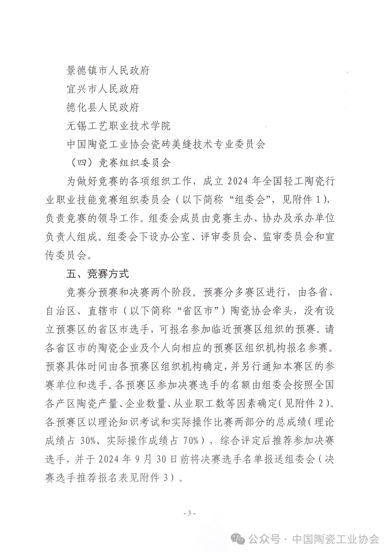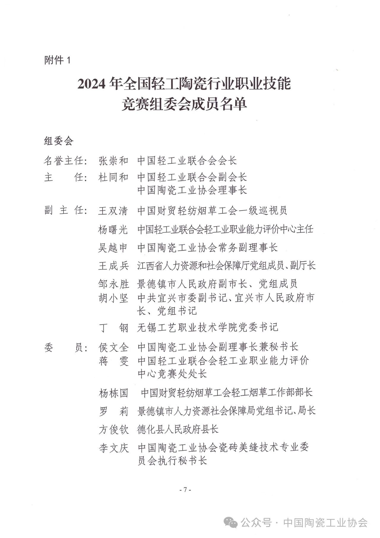 【通知】关于举办2024年全国轻工陶瓷行业职业技能竞赛的通知