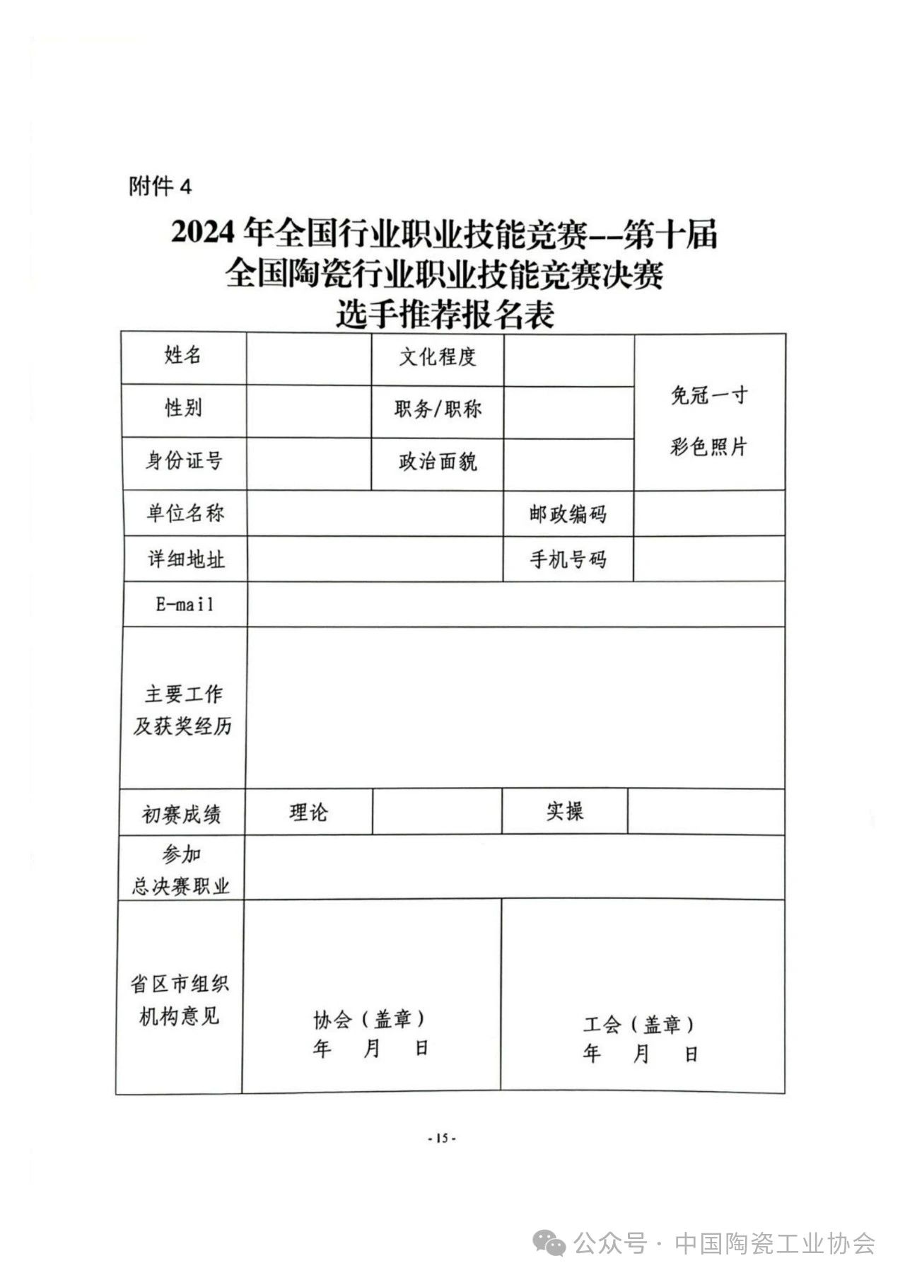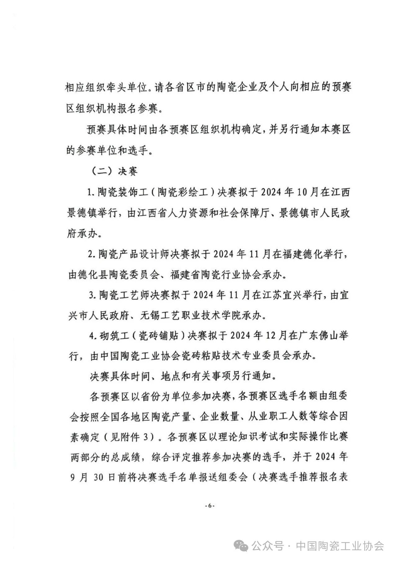 【通知】关于举办2024年全国行业职业技能竞赛--第十届全国陶瓷行业职业技能竞赛的通知