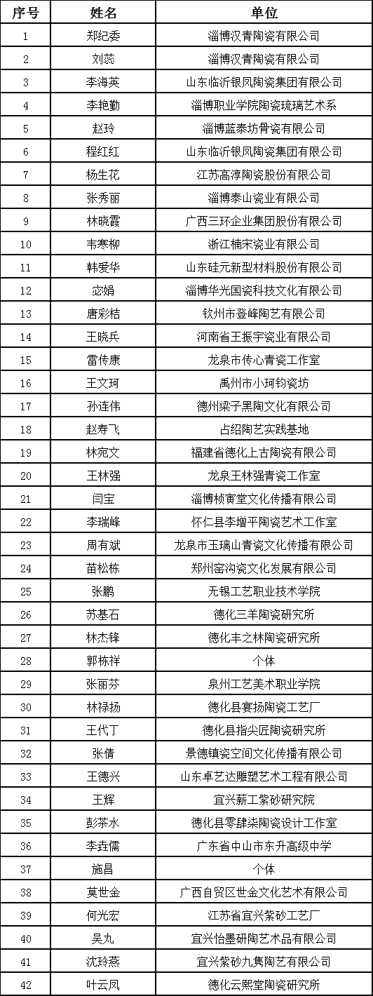 根据《关于印发<全国轻工职业技能竞赛指导意见>的通知》(中轻联党人〔2021〕113号)有关规定,中国陶瓷工业协会对2021年度国赛中获得4-15名和行赛中获得1-3名的选手进行了材料审核并上报。经对技能竞赛结果复核确认,中国轻工业联合会决定授予我行业郑纪委等42名同志“全国轻工技术能手”荣誉称号。