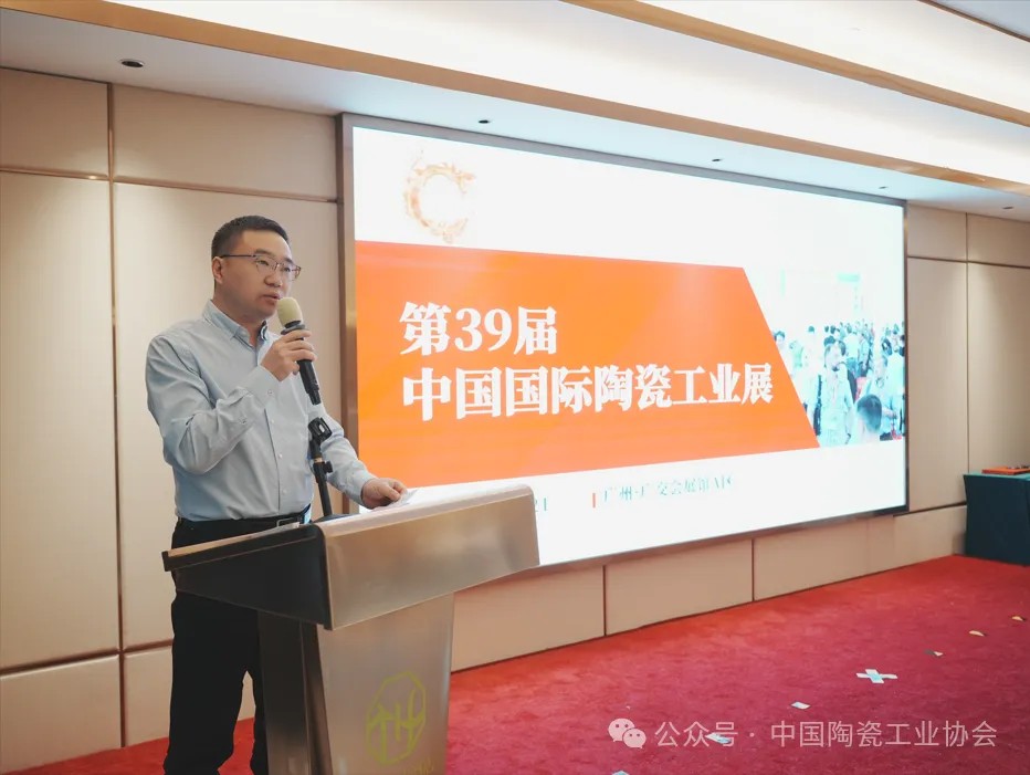 广东新之联展览公司董事副总经理欧阳王骥汇报了第39届广州国际陶瓷工业展的筹备进展,展会将继续努力为全球陶瓷企业搭建技术交流与合作平台。
