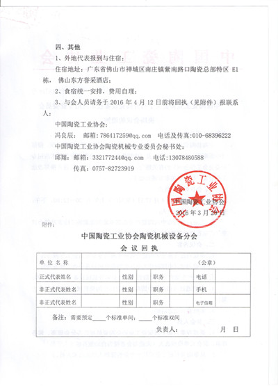 中国陶瓷工业协会关于召开陶瓷设备技术应用专业委员会换届会议的通知