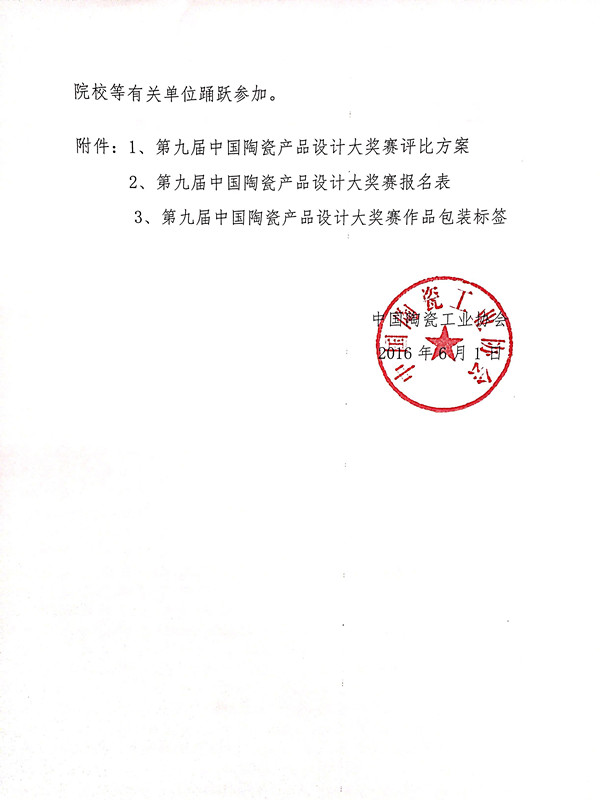 各地区陶瓷协会、陶瓷企业、相关院校和有关单位: