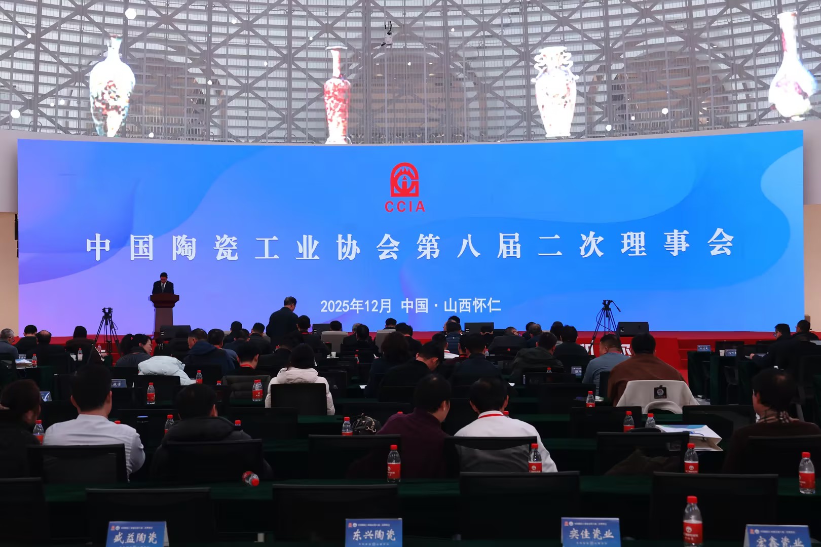 2025年12月29日,中国陶瓷工业协会第八届二次理事会在山西省怀仁市成功召开。中国陶瓷工业协会刘挺理事长、吴越申常务副理事长、吕品昌监事长、侯文全副理事长、樊瑞新秘书长、董博副理事长,怀仁市有关领导等出席会议。来自全国各省市区陶瓷协会、院校、科研机构及行业管理部门代表、陶瓷企业会员代表等共计200余人出席会议。