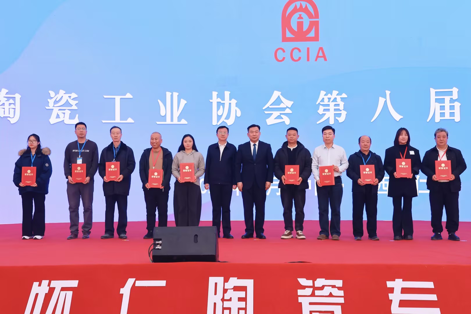 中国陶瓷工业协会刘挺理事长、怀仁市委常委、田勇副市长向部分捐赠者颁发了证书。