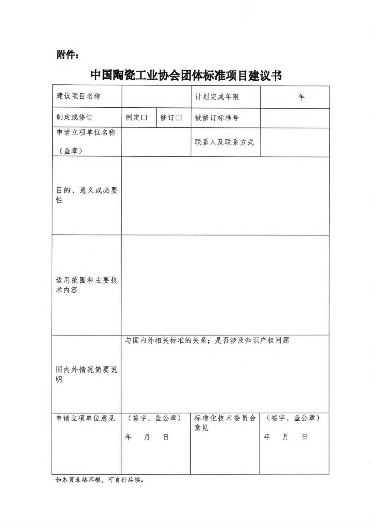 中国陶瓷工业协会团体标准项目建议书.docx